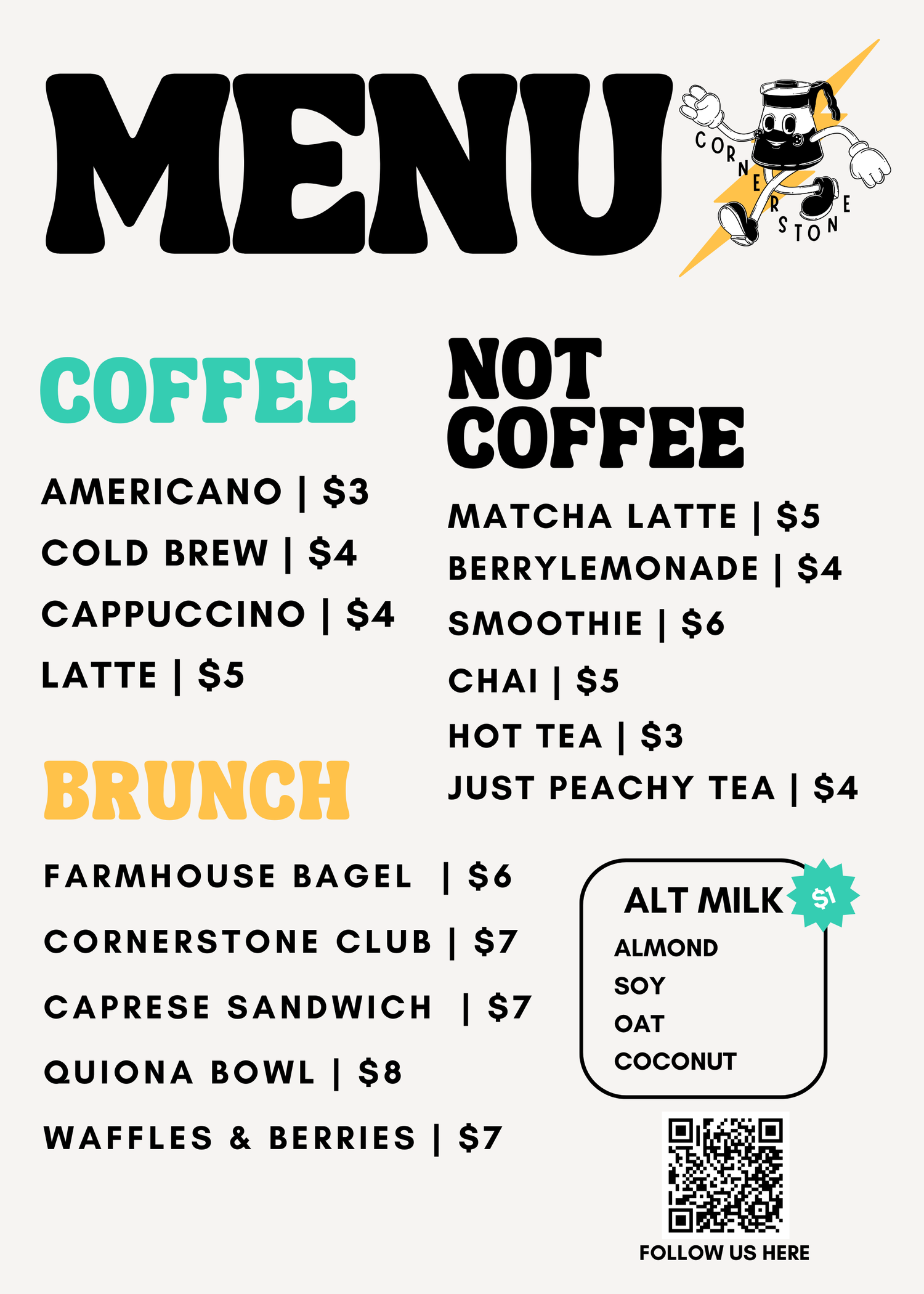 Coffee is definitely our specialty- our beans are sourced ethically and meticulously roasted for top-notch quality. Not a coffee fan? No worries, we've got matcha, lemonades, teas, charged lemonades, pastries and brunch goodies.